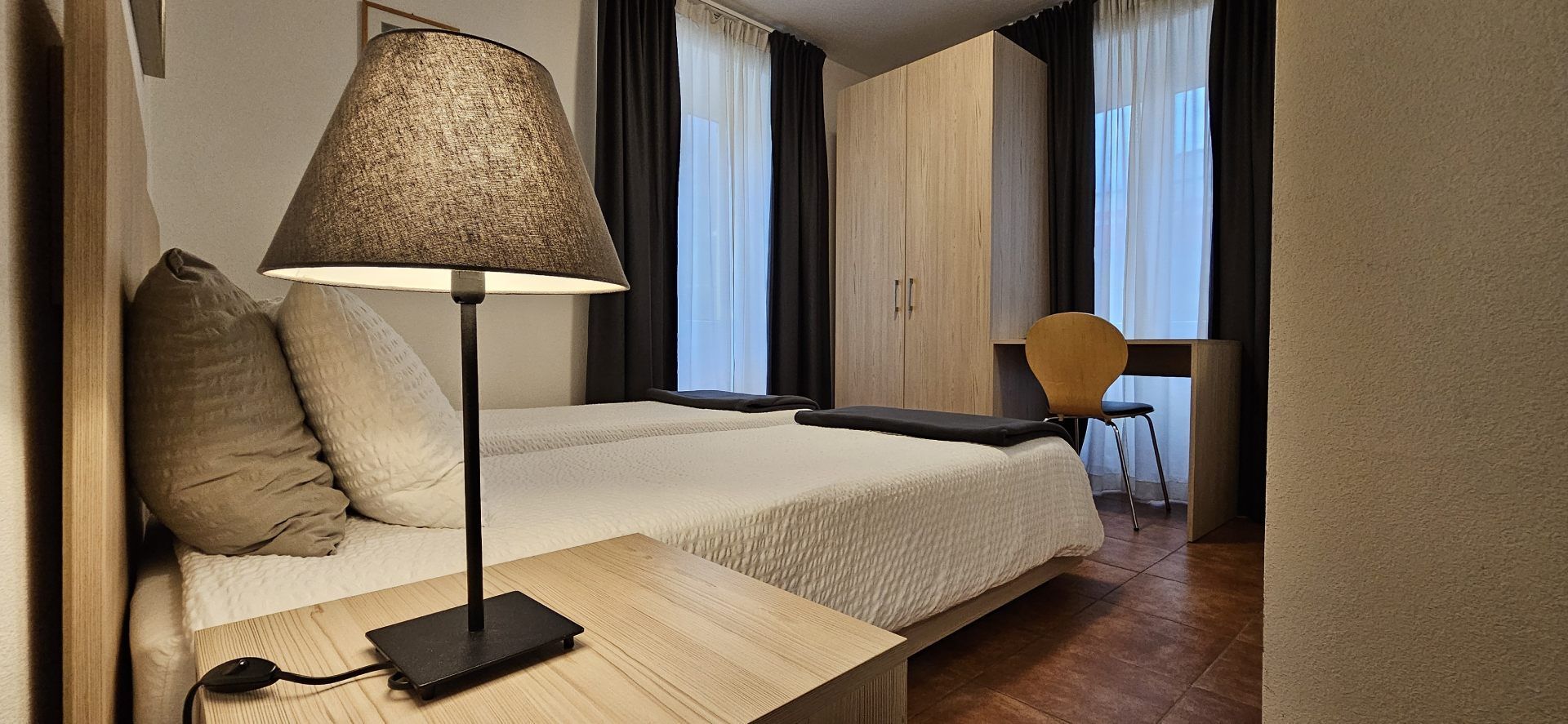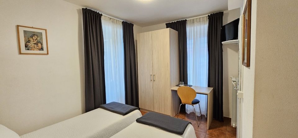Affittacamere Elvezia offre anche una camera doppia tranquilla con affaccio sul retro. Dotata di due letti singoli 90x200, scrivania, tavolino appoggia-valigia, guardaroba e bagno privato completo di accessori, questa stanza garantisce un soggiorno confortevole e rilassante. Ideale per chi cerca quiete e comodità, è disponibile a partire da 120 CHF a notte, con tassa di soggiorno inclusa. Una scelta perfetta per scoprire il fascino del Ticino.